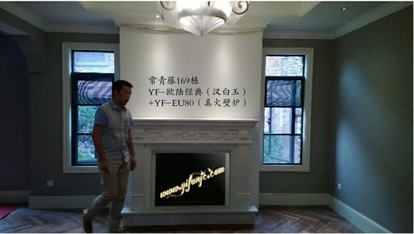 2、壁爐產品型號:真火燃木壁爐YF-EU80 嵌入式燃木壁爐,最深爐膛,簡潔大氣款式,搭配別致的定制大理石雕刻壁爐架YF-歐陸經典,火焰與純白的色覺碰撞。