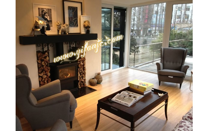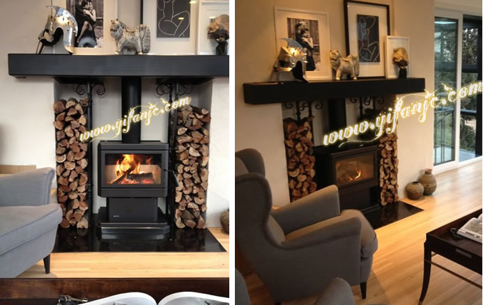 2、產(chǎn)品型號(hào):真火燃木壁爐YF-GF28,獨(dú)立式壁爐打造出嵌入式裝飾效果,兩邊鐵藝裝飾結(jié)合木柴擺放的藝術(shù)搭配。