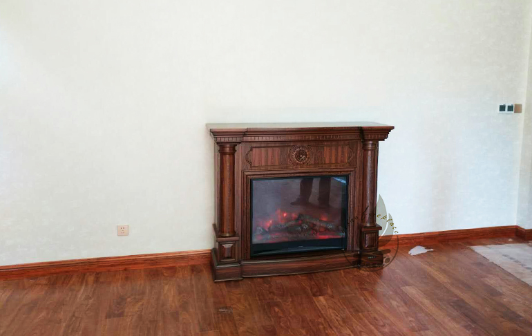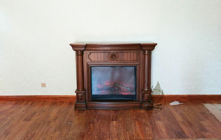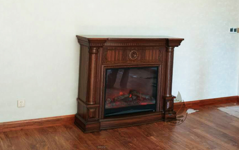 木質電壁爐一體機,外部木質材質的壁爐架與電壁爐芯配成整套裝飾,顏色、款式和尺寸多樣,材質多為實木雕刻,不接受定制。
