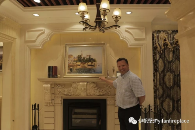 汀普萊斯Rod Baldwin先生,對伊帆大理石純手工雕刻壁爐架非常喜歡!