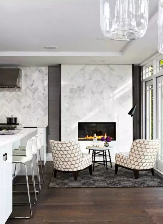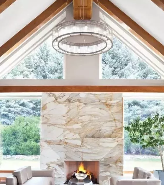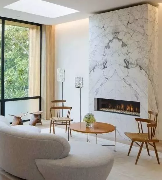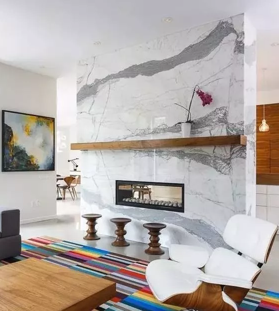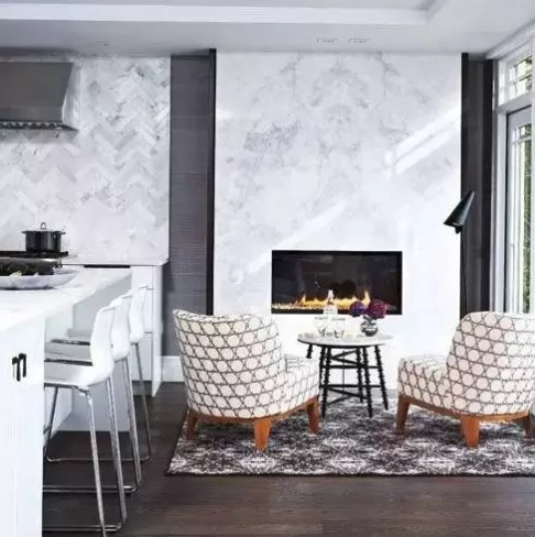看看大理石是如何讓壁爐與背景墻完美結(jié)合。