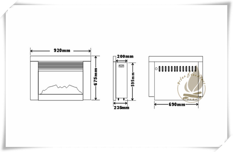 標(biāo)準(zhǔn)配置/standard layout | 電壁爐加厚冷軋鋼板/專用LED光源/加厚鋼化玻璃面/高仿真立體陶瓷纖維木柴炭火床/專用光學(xué)反射幕布 |