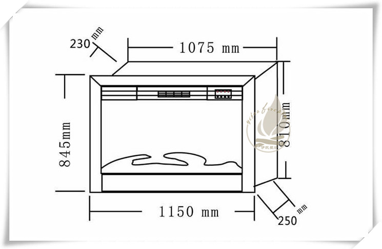 標準配置/standard layout | 電壁爐加厚冷軋鋼板/專用LED光源/加厚鋼化玻璃面/高仿真立體陶瓷纖維木柴炭火床/專用光學反射幕布 |